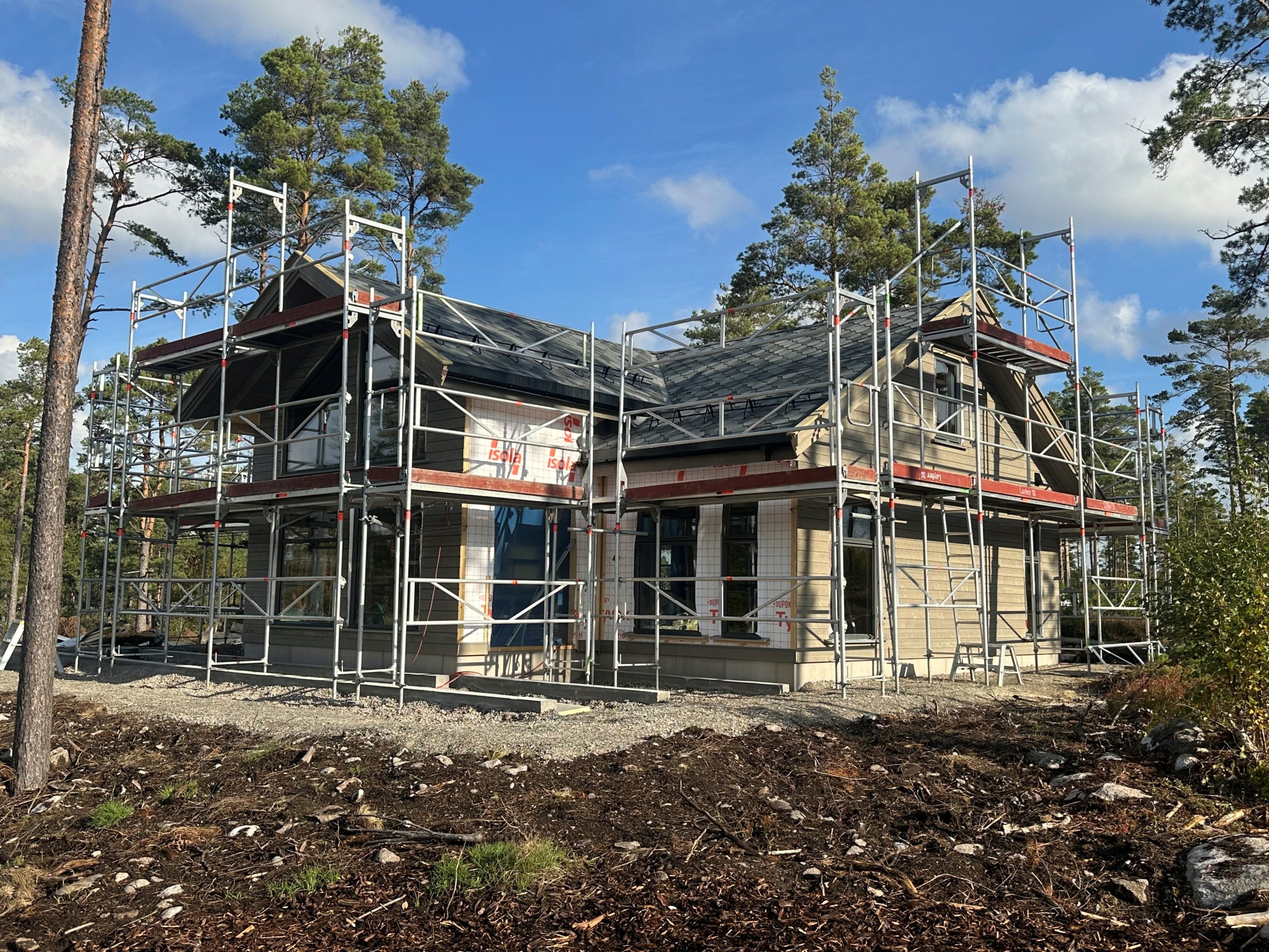På tomt nr. 27 er den første hytta i ferd med å reise seg.